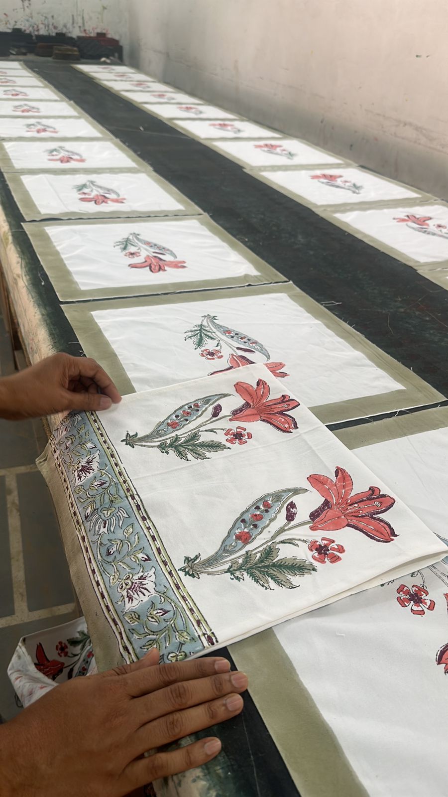 'The Pink City,' also known as Jaipur, is renowned for its rich textile heritage and centuries-old craftsmanship. It has been the hub for textiles since the 18th century with a focus on block printing and dyeing. Block Printing is a labour-intensive process that requires great skill and attention to detail. It begins with artisans carving intricate designs onto wooden blocks, which are then used to stamp patterns onto fabric. Each cushion cover is a masterpiece of artisanal expertise and soft, high-quality fabric. They tell a story of the artisan's dedication, precision, and passion tied in with inspiration taken from Jaipur's architecture. By supporting these artisans, we are not only preserving traditional techniques passed down through generations but also empowering local communities.
